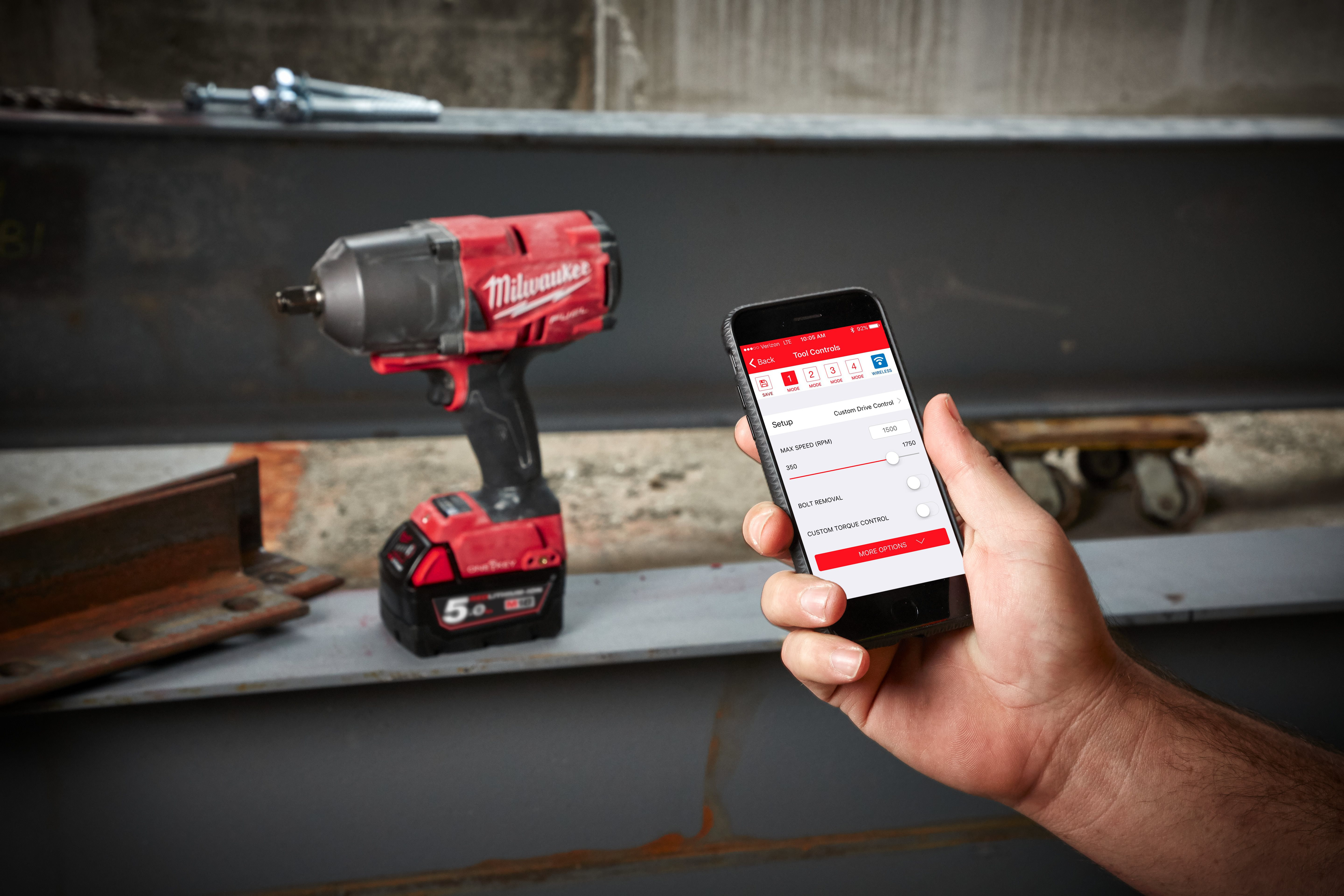 - La boulonneuse M18 FUEL™ équipée de la technologie ONE-KEY™ délivre un couple de serrage de 1017 Nm tout tout en restant compacte (206 mm) pour accéder facilement aux espaces étroits