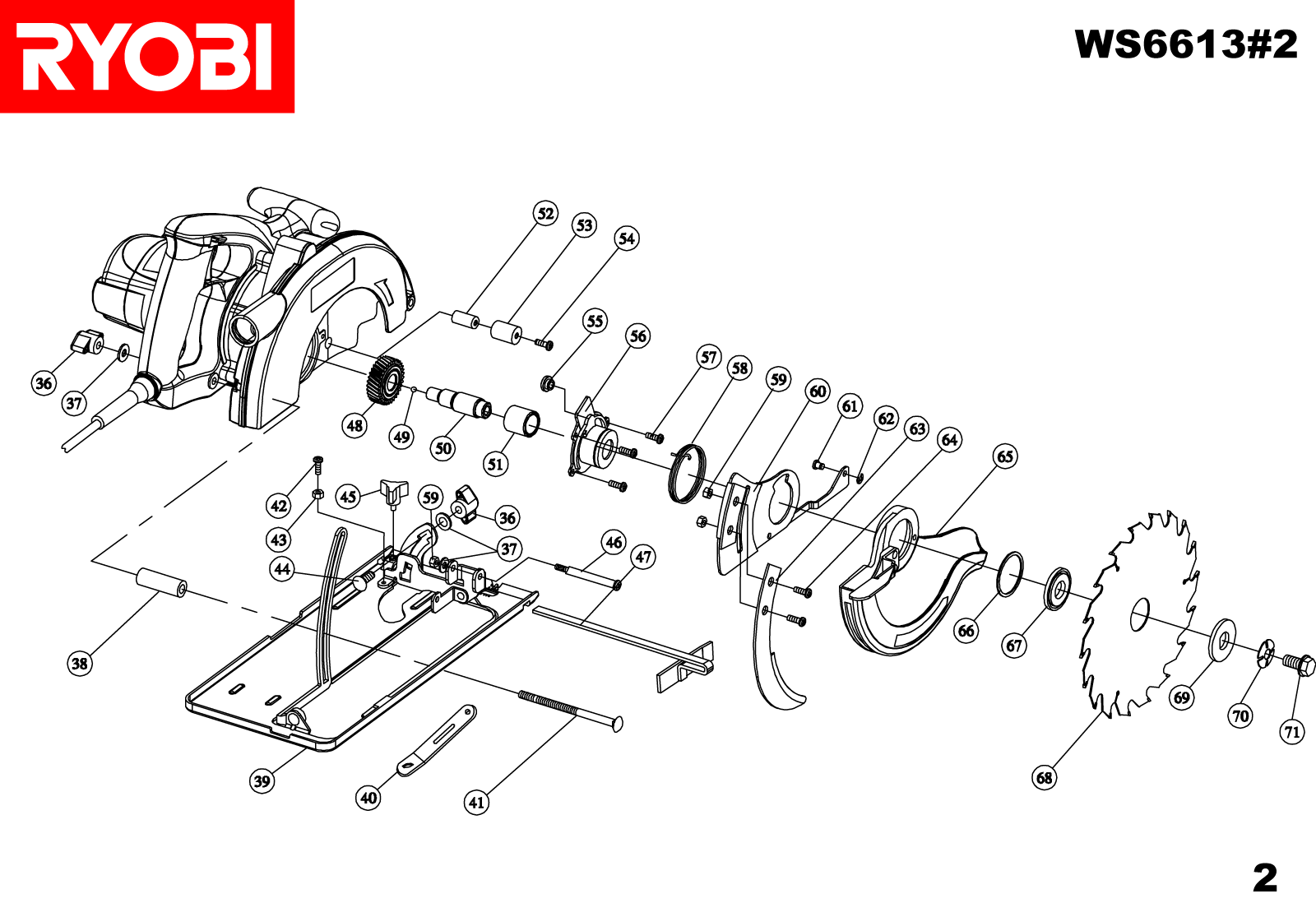 CARTER DE LAME WS6613 - Article plus fourni RYOBI WS6613
