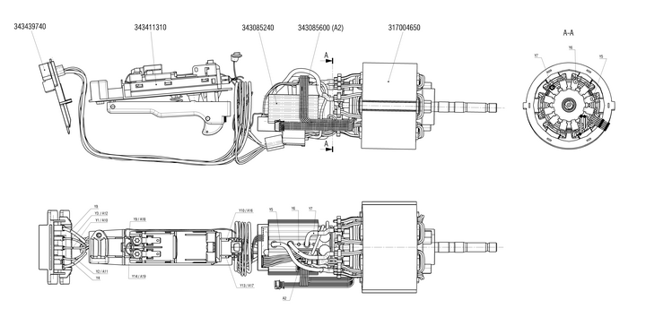 55 Moteur complet,36 V METABO WPB 36 LTX BL 230